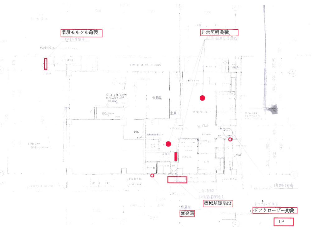 図面に修繕必要箇所を記載して報告させて頂きます。